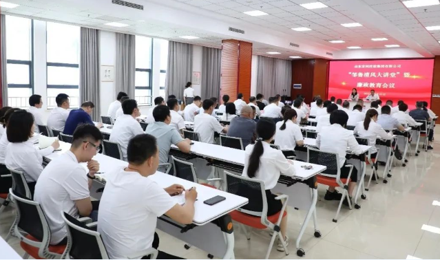 为深入贯彻全面从严治党战略方针,推进习近平新时代中国特色社会主义思想进企业,加强新时代廉洁文化建设,教育引导党员干部夯实清正廉洁思想根基,5月31日下午,宏河乐动平台开展“邹鲁清风大讲堂”暨廉政教育活动。活动邀请市委第三巡察组组长周娟同志,现场作“深化政治巡察、强化政治担当”廉政宣讲。