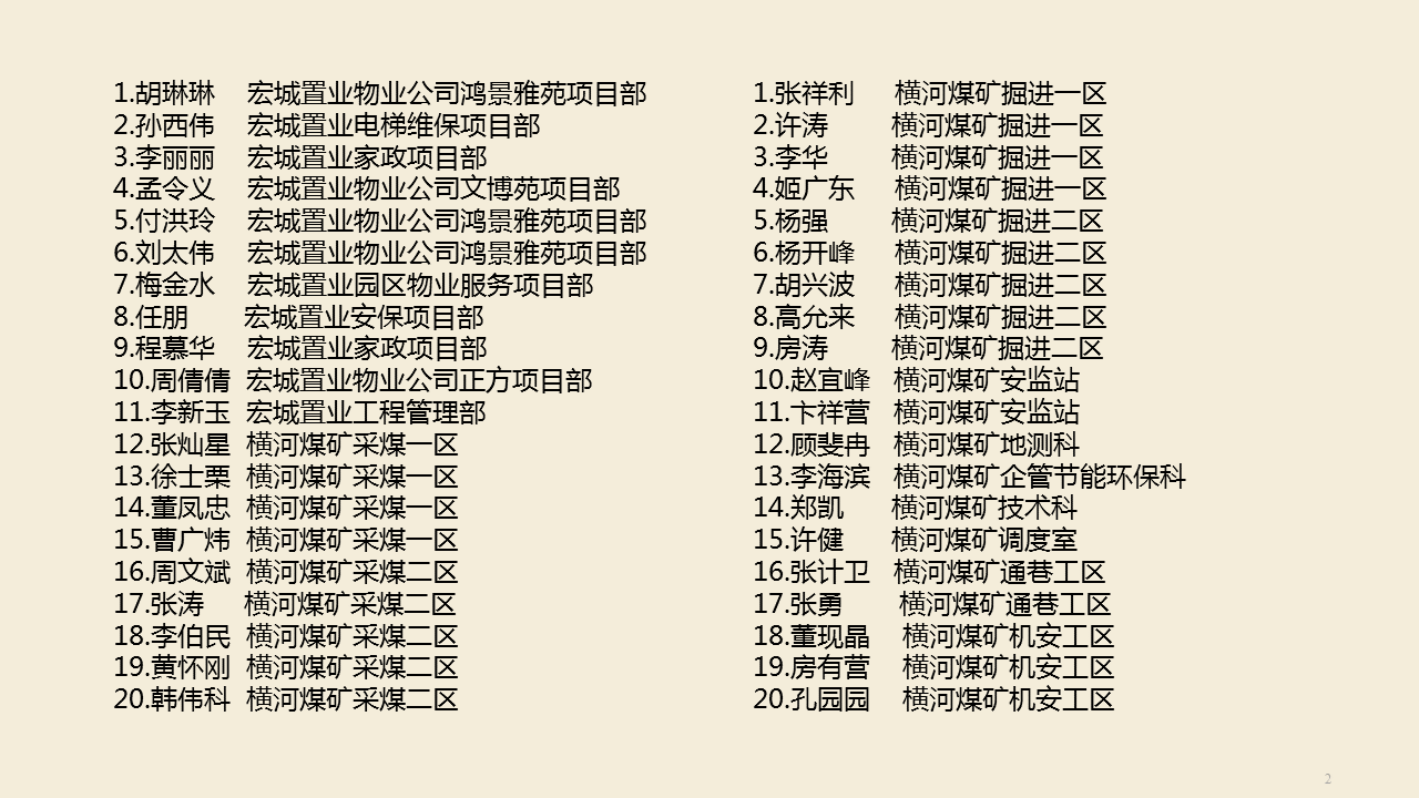 为展示乐动平台员工积极向上、爱岗敬业、无私奉献的优秀品质和良好精神风貌,加强员工队伍建设,激励担当作为,凝聚干事力量,按照乐动平台党委安排,在乐动平台开展“爱岗敬业最美宏河人”推荐评选及学习宣传活动,自10月中旬文件下发之日开始,至截止日共收到推荐材料123份。乐动平台网管宣传科重点根据典型性、真实性及材料充实性择优陆续推出各单位、部门推选的爱岗敬业最美宏河人事迹材料37份。 在发布的37份事迹材料中以他们为代表的普通员工,涵盖乐动平台发展业务中涉猎的不同行业、不同岗位,虽工作性质不同,但都以在平凡岗位上默默工作,无私奉献,努力向上,持之以恒体现自己的价值为主。期间,微信公众后台收到很多很多留言,多是为大家自己心目中爱岗敬业的模范加油点赞! 从泗河之滨到孟子湖畔,从横河煤矿到宏河控股,逢山开道,逾河架桥,知难而进,召之能来,来之能战,战之能胜!在乐动平台公司发展过程中,有一大批员工随工作需要远赴外地,有只要宏河发展建设有需要:“宏河在哪,家在哪”的他,有宁可听些骂声,也不能让安全没保障的安监员,有十几年如一日坚守一个岗位的她,有传承互助的好师傅,有忠于职守的有勤奋好学的他,有以青年之名扛时代担当踏实努力德才兼备的青年们,有妙手回春维修大拿,有任重道远巷修人,也有退伍不褪色平凡岗位展风采的采煤一线工作者等等等等。为每一个努力加油的自己点赞,为努力向上的宏河人点赞! 因活动开展日期及篇幅有限没有将所有事迹一一展示,文末将各单位、部室上报所有推荐材料人员名单附上。在此感恩感谢!